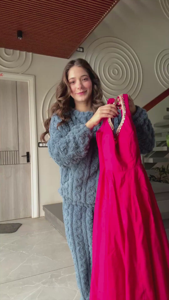Anarkali crafted from heavy pure Roman Silk Chanderi fabric